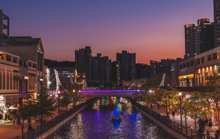 라베니체는 금빛수로를 따라 조성된 상업지구로, 베네치아풍의 건축물과 함께 트렌디한 카페, 레스토랑, 쇼핑몰이 밀집해 있어 감성적인 데이트나 나들이에 안성맞춤입니다.